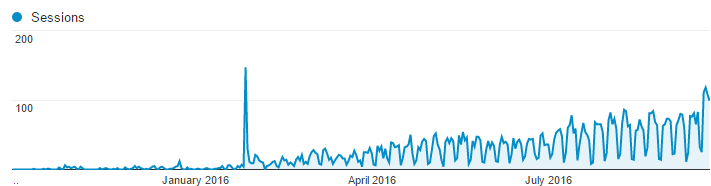 My site was ignored by google until I wrote a post which caught the attentions of thousands of people 10 golden rules for becoming a better programmer. It was on hacker news for a day or two and it divided opinion. This got people talking about it and sharing it with others. Once my site started getting shared by other sites, google took more notice of me, virtually overnight, as you can see from the below chart of organic traffic.